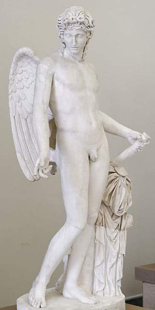 Prezentowana dziś statua Erosa jest rzymską repliką datowaną na II w. n.e. Przedstawia Erosa typu Centocelle, albo, jeśli dobrze zrozumiałam "z" Centocelle a typ ten nawiązuje do greckiego oryginału z IV w. p.n.e. i przedstawia naszego bożka miłości, jako zamyślonego młodego człowieka trzymającego w dłoniach kołczan ze strzałami i łuk (łuk zaginął).