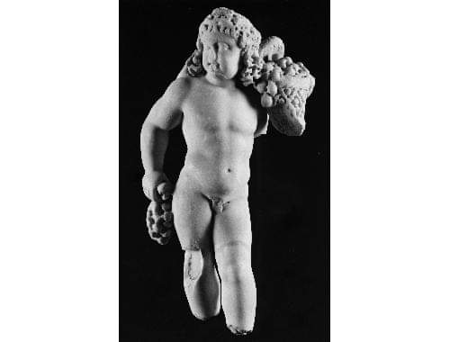 Nasz dzisiejszy erote to chłopczyk o pulchnej twarzy, z rogiem obfitości w jednej ręce i kiściem winogron w drugiej. Rzeźba pochodzi z II połowy III w. n.e., osiąga wysokość 43 cm, wykonana została z białego marmuru a jej numer katalogowy to 6338.