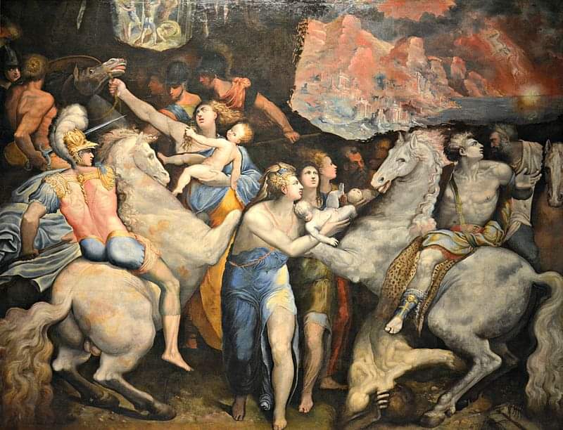 Obraz, na którym widzimy kobiety już z dziećmi, ma ukazywać ich dążenie do przerwania walk i namalowany został w 1563 roku.