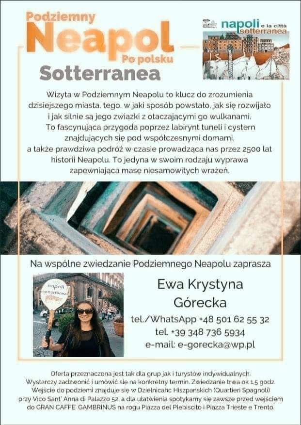 Osoby przybywające do Neapolu zapraszam serdecznie na zwiedzanie Podziemnego Neapolu PO POLSKU (i po rosyjsku)a także na tzw. SPACERY Z SOKRATESEM