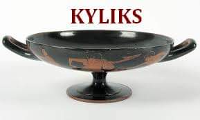 KYLIKS - to starogrecka płaska czara na wysokiej nóżce, z dwoma poziomymi imadłami (greckie kýliks dosłownie oznacza kielich). Służyła do picia wina, które rozcieńczano wodą w proporcji 1:1.
