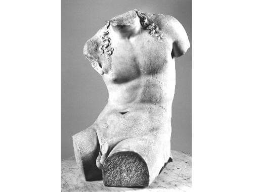 Jest to właściwie korpus, tułów przedstawiający nagą męską postać siedzącą, większą niż naturalna, młodzieńczą, jak się wydaje, o miękkich, ale nie wiotkich kształtach. Jego wysokość to 100 cm, wykonany został z białego marmuru, datowany zaś jest na II połowę I w. p.n.e. Nr katalogowy 6034.